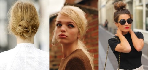 • Cabelo preso com topete ou volume na frente