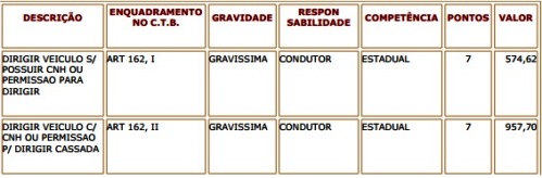 Tabela de Multas de Trânsito